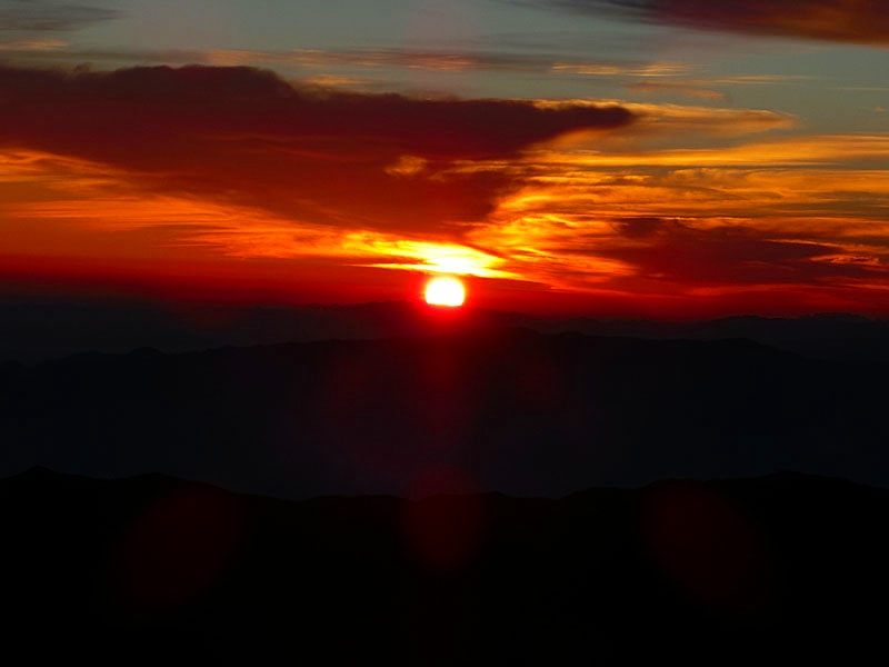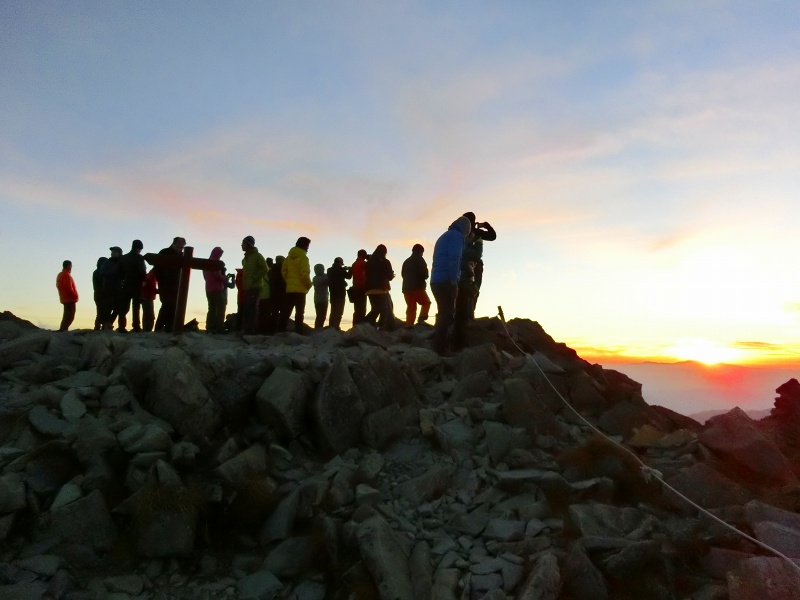 朝食は 5時15分、御来光は 5時50分。荘厳の一言。 ↑↓ |