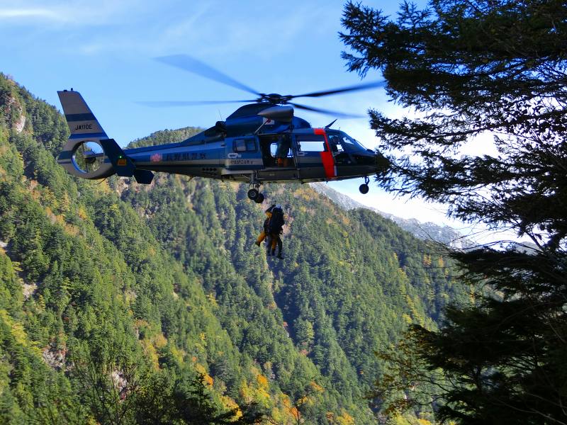 本谷橋近くで レスキューに出会しました。「明日は我が身」と油断を戒め、慎重に下山。 |