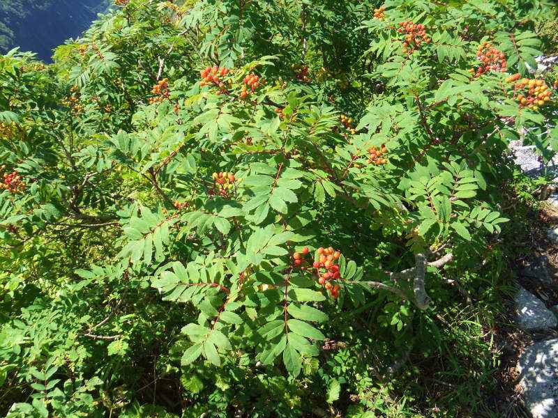| ナナカマドは 実だけ色付いていました。 あと半月後には 紅葉して 登山者の目を楽しませてくれることでしょう。 |