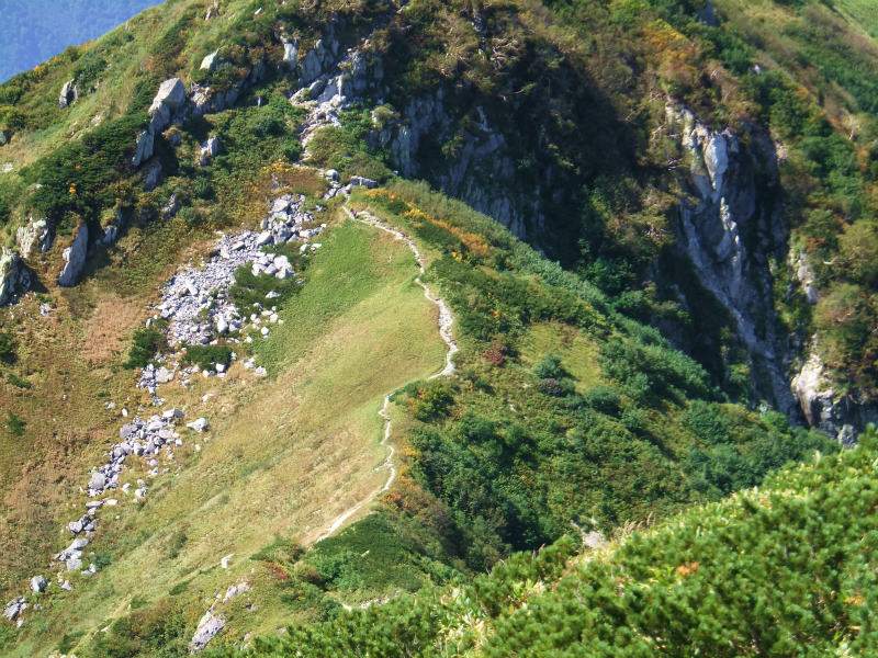 | ガレて 浮き石が多く、足場が悪い道が続きます。 | |