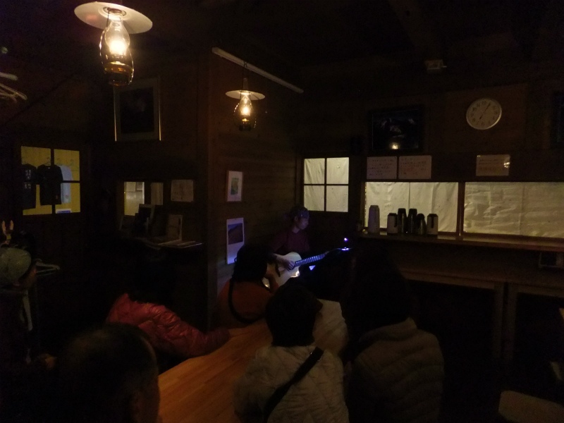 | 夕食後、オーナーと従業員による ギターの弾き語りは 50分にも及び、終始 歓声に沸きました。 山と音楽は なぜこんなにも合うのだろうか? 中でも フォークは 最高。無性に オフコースが聴きたくなりました w CDでいいから 山間で 「 夜明けを告げに 」「 僕達の時代 」を聴けたらなぁ。 |